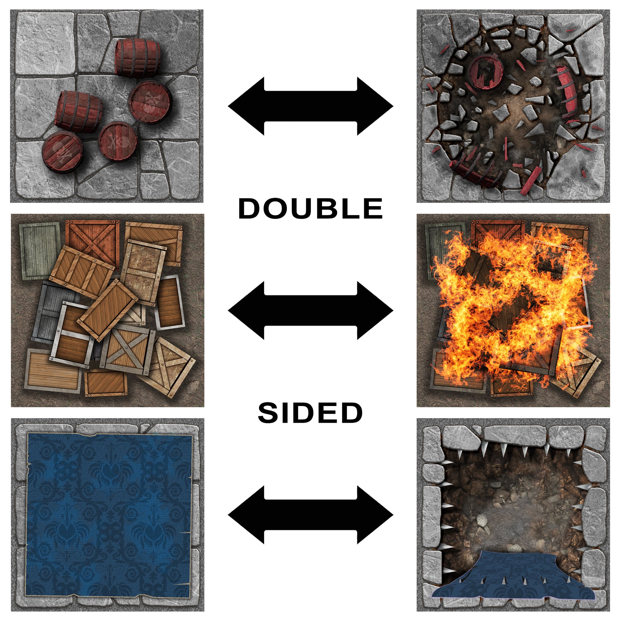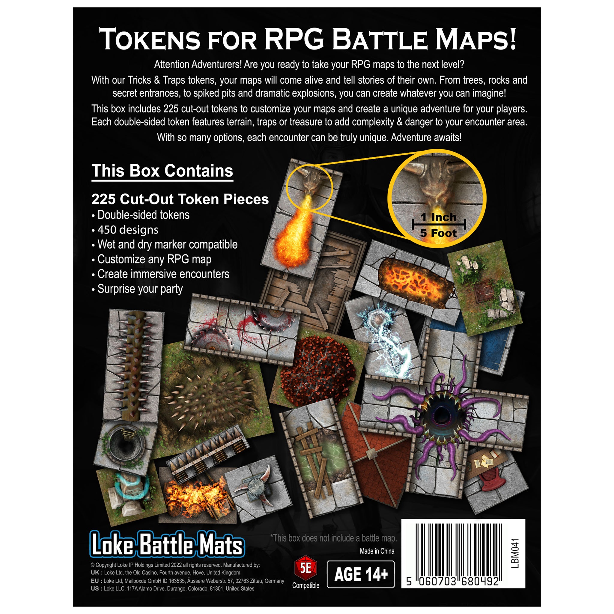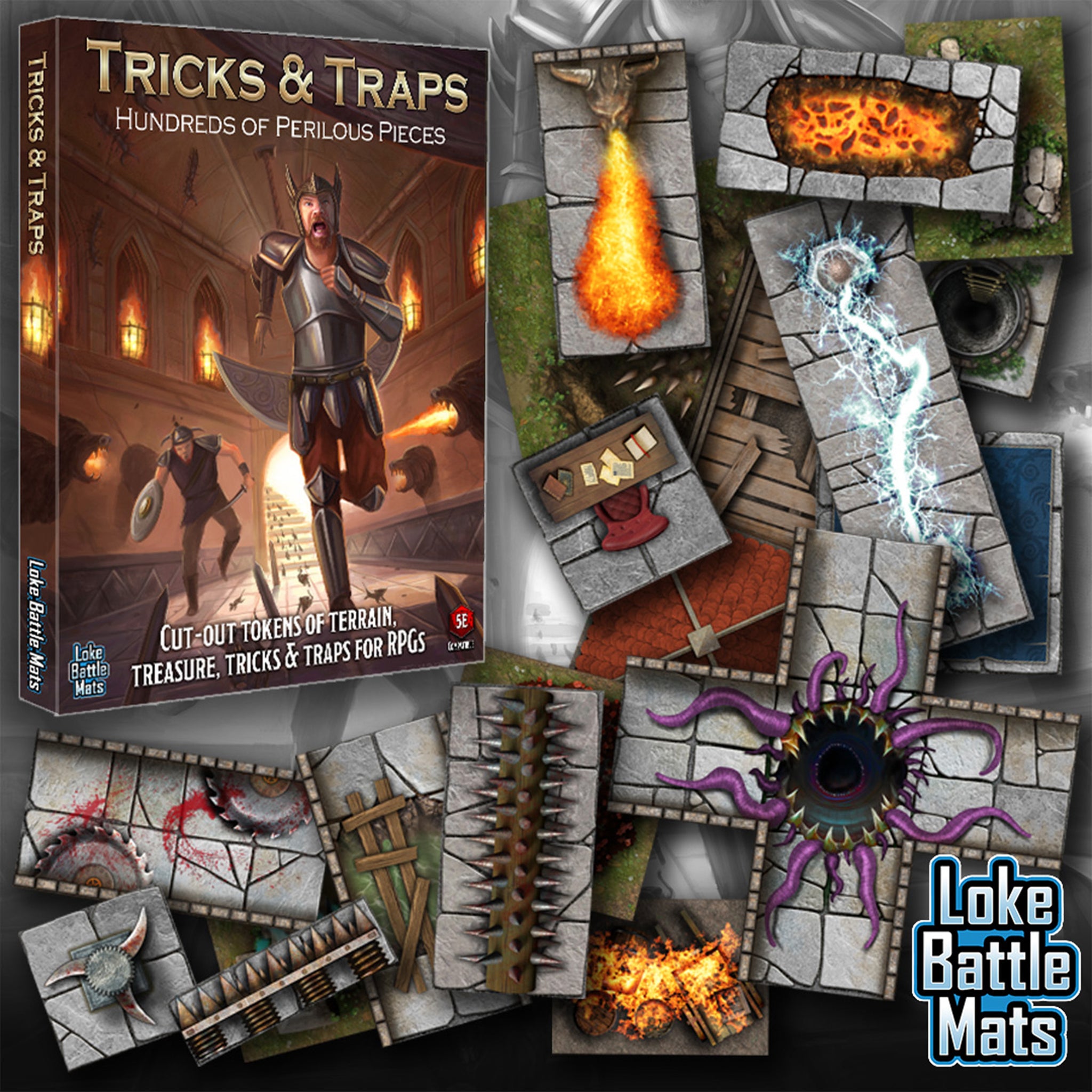 Introducing the Box of Tricks & Traps - our customizable RPG battle map token set, perfect for any tabletop gaming adventure. This box contains sheets of hundreds of cut-out, laminated tokens featuring detailed artwork of various terrain types, furniture, and other features that you can use to create a unique and immersive game experience.